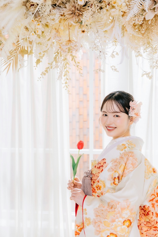 白無垢や色打掛を合わせれば、伝統の中にモダンなエッセンスが加わり、