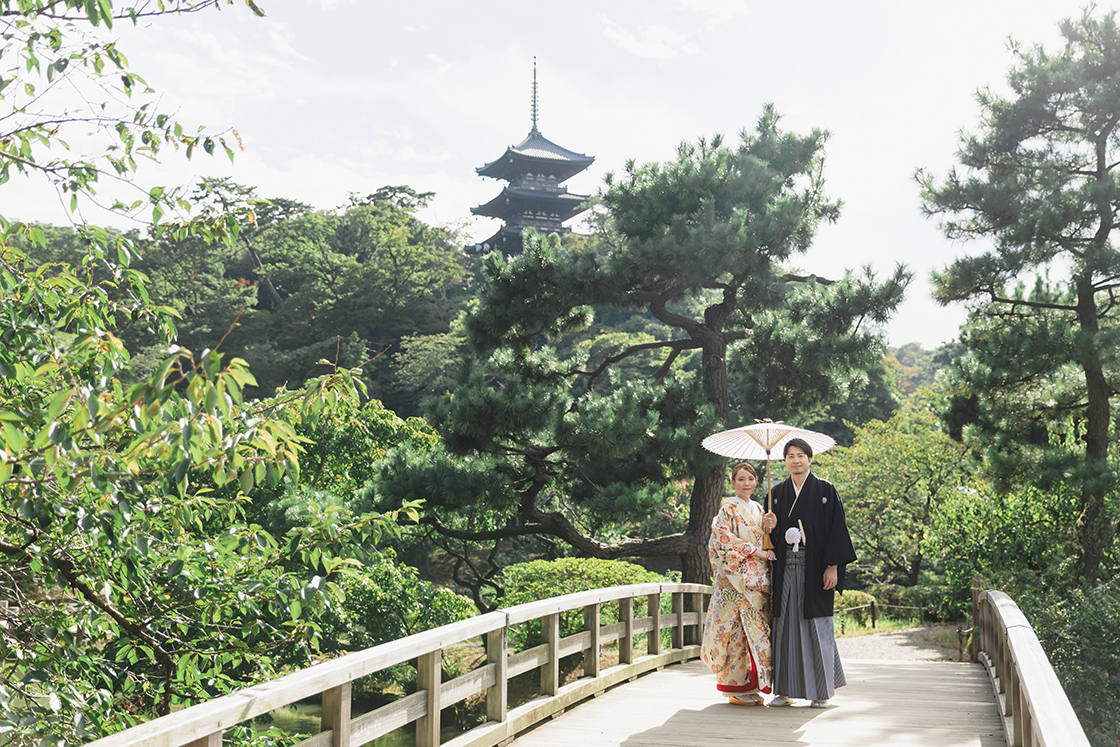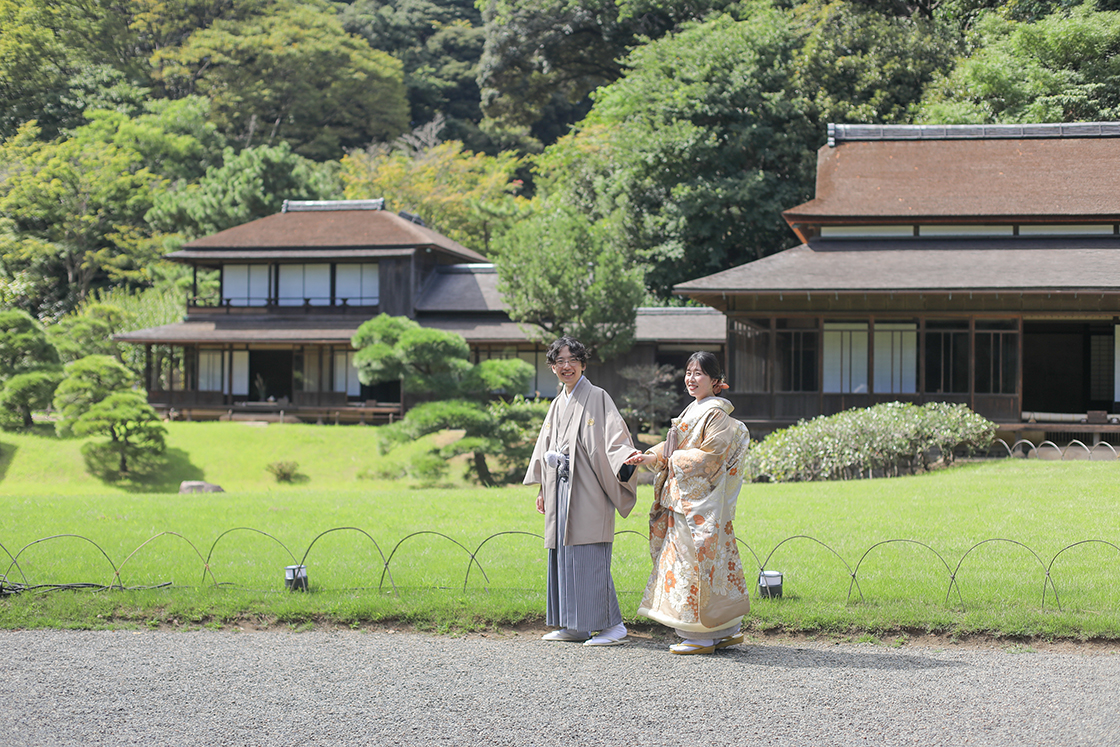 広大な敷地は庭園だけでなく、重要文化財建造物10件12棟の趣のある古建築が点在しています。